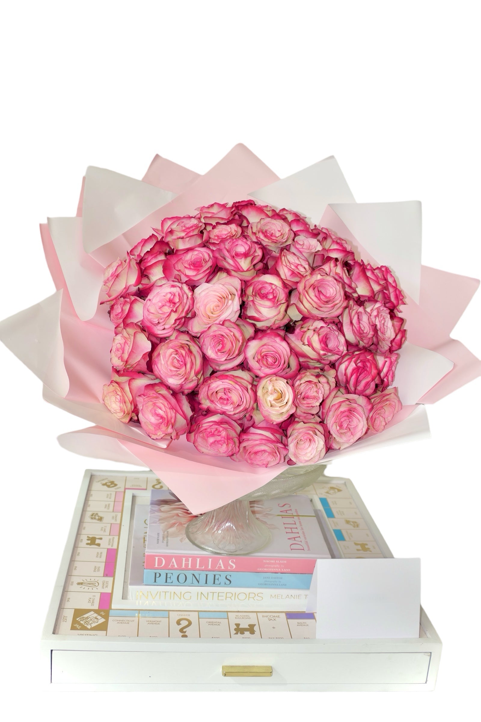 Indulge in the timeless elegance of our premium bicolor pink roses, meticulously cultivated to perfection. Elevate any occasion with these exquisite blooms, where unparalleled quality meets the delicate allure of nature's finest hues