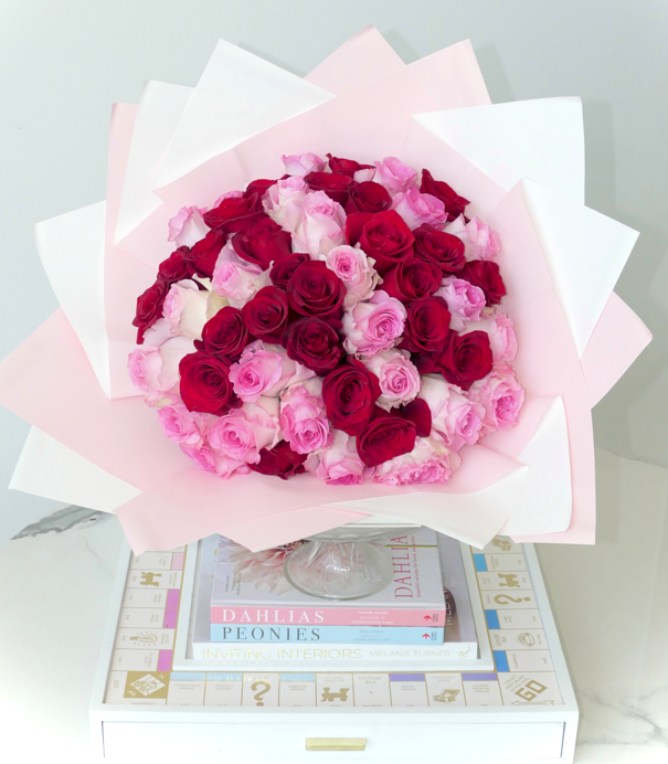 Indulge in the timeless elegance of our premium bicolor pink roses, meticulously cultivated to perfection. Elevate any occasion with these exquisite blooms, where unparalleled quality meets the delicate allure of nature's finest hues
